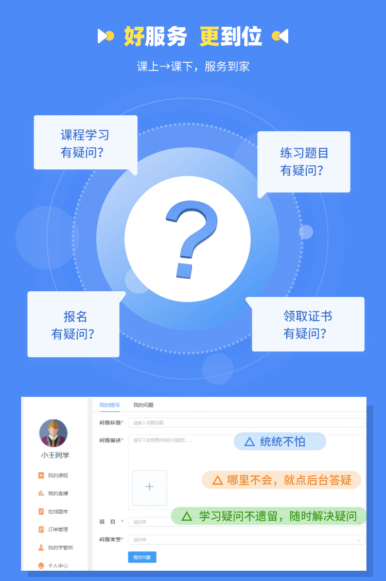 特色服務(wù): 內(nèi)部講義 2424小時答疑 1對1學(xué)習(xí)管理師服務(wù) 免費贈送教材