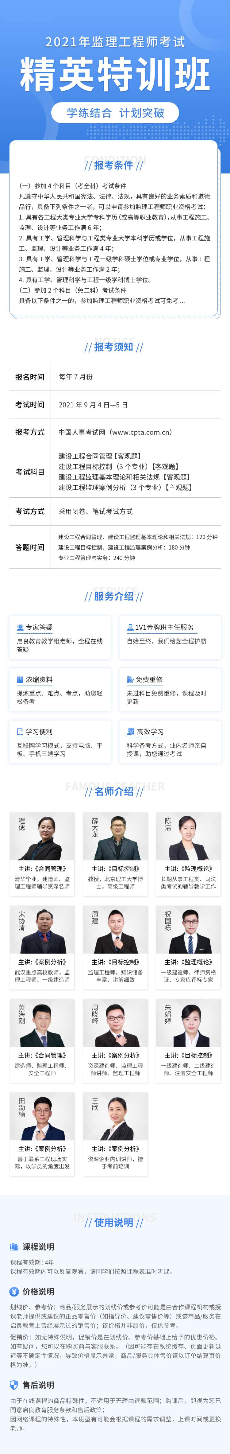 串講沖刺課 | 《監(jiān)理概論》 | 5 | 陳潔 | 將各科進(jìn)行精華總結(jié),提煉各科核心,將“重中之重”、“2021年濃縮版重點”進(jìn)行總結(jié)提煉與講授。幫學(xué)生歸納總結(jié),去粗取精,提高核心內(nèi)容學(xué)習(xí)效果,提升應(yīng)試能力。 | |